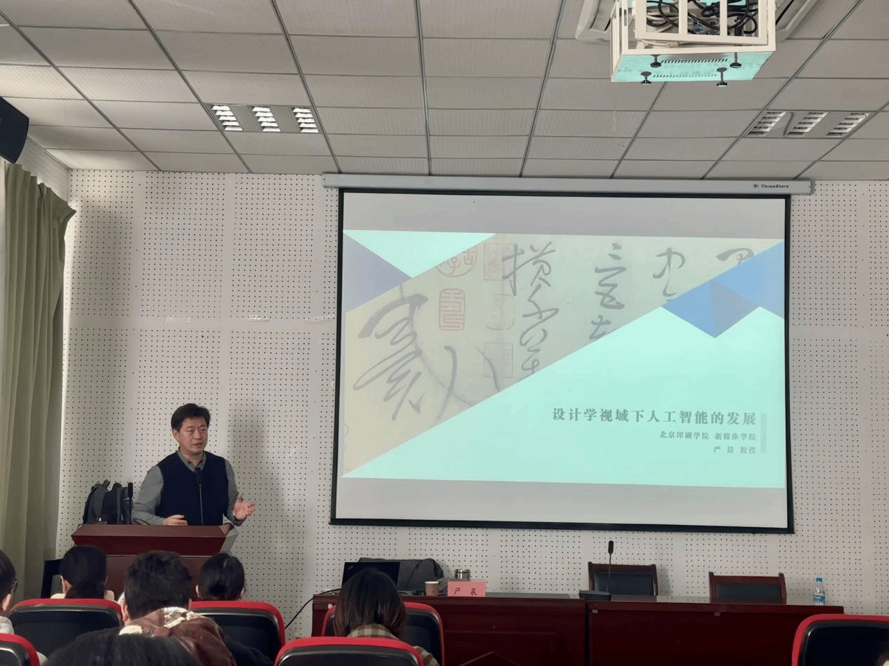 11月28日,北京印刷学院严晨教授应邀做客我校鄱湖学术讲坛,在艺术楼A205作了一场主题为“设计学视域下人工智能的发展”的学术讲座,人文艺术学院院长万芬芬、部分教师代表及研究生共百余人聆听了讲座。