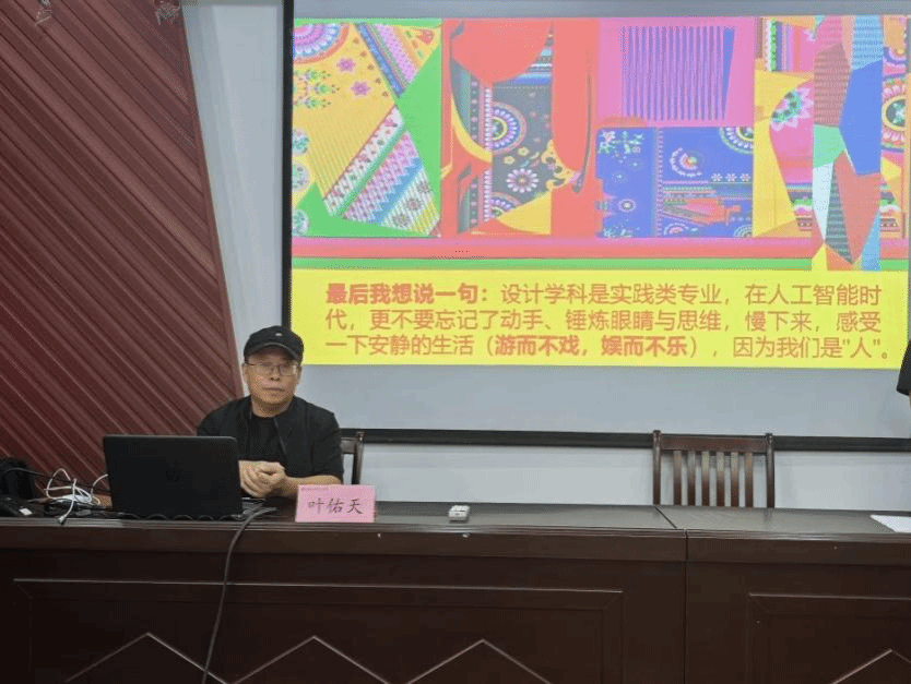 讲座尾声,叶教授同与会师生亲切交流,他勉励师生:面对 AI 时代的机遇与挑战,既要持续夯实专业功底,更要坚持艺术创作的初心与方向。(文 朱世龙/图 王万宝)
