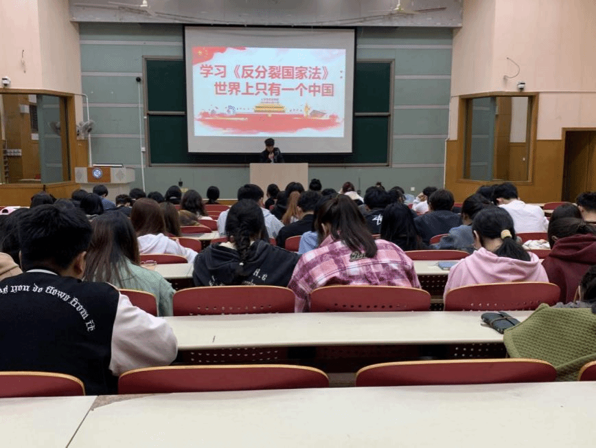 为进一步加强国家安全和国家法制教育,提高学生风险防范能力,筑牢意识形态防线,增强中华民族共同体意识,人文与艺术学院于10月29日在北教学楼C104组织开展《反分裂国家法》学习活动。
