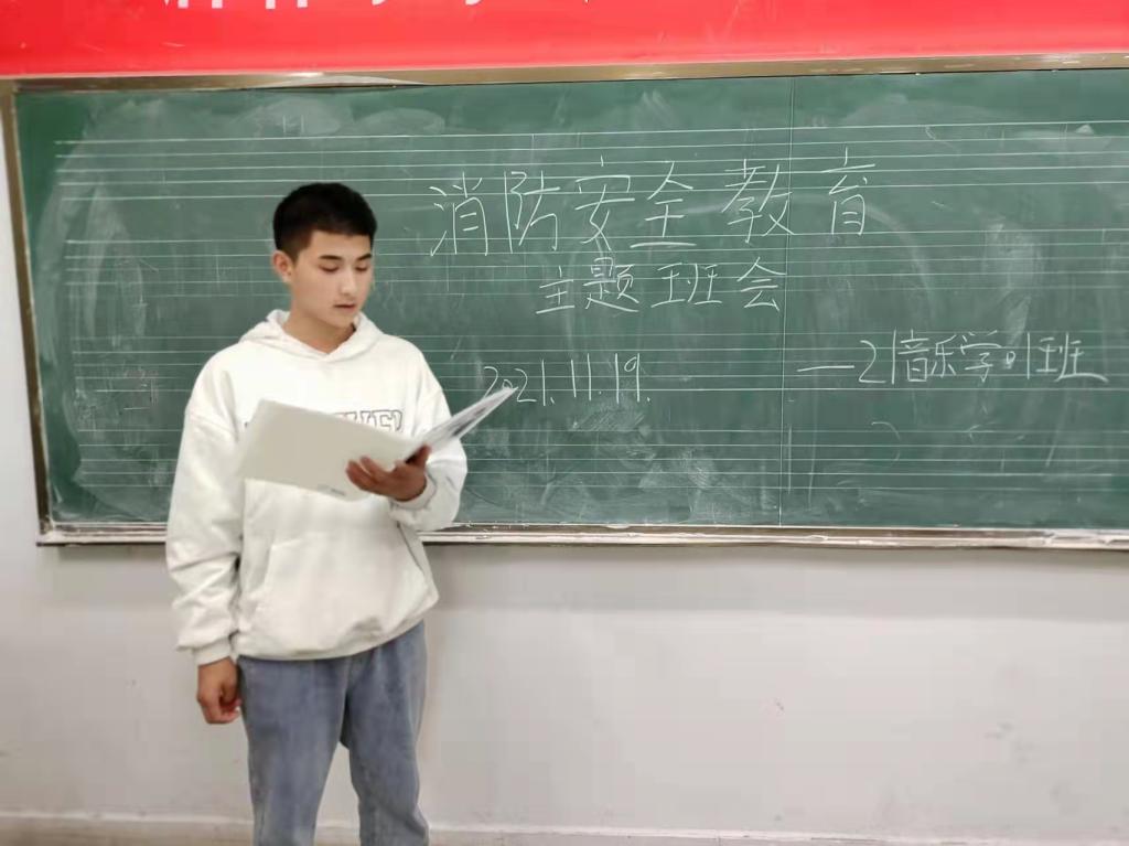 班会由班长讲解消防安全的重要性,同学们观看了消防安全宣传视频。安全视频结合近年来大中专院校发生的重大火灾案例,形象生动地展示了消防安全相关知识,让学生们受益匪浅。