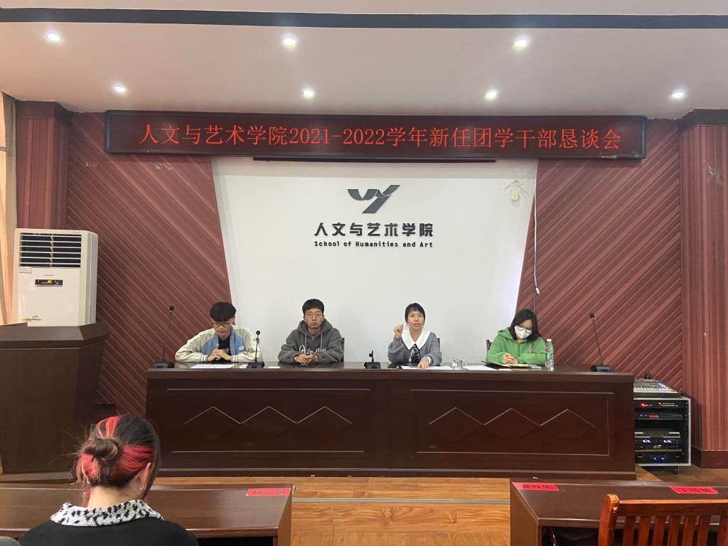 为提高学生干部整体素质,加强学生干部队伍的凝聚力、战斗力,人文与艺术学院于11月8日在艺术楼A230召开了2021-2022学年新任团学干部恳谈会,我院团委副书记丁蓓蒂出席此次会议,全体20级新任团学干部参加。