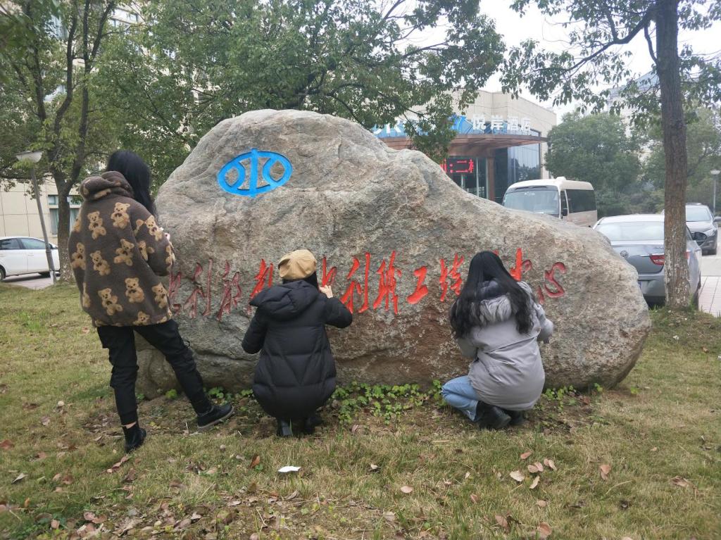 活动开始,志愿者们拿着画笔和颜料在景观石上进行修复描红。尽管寒风呼啸,志愿者们仍坚持描红,服务校园文化的传播,传承校园文化的精神。在负责人的带领下,志愿者们高效的完成了本次的活动,志愿者用勤劳的双手,让原本黯淡的景观石焕然一新。最后,参与活动的相关人员一同在修复描红完的景观石前合影留念。