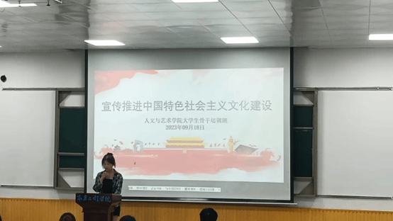 为加强学生对中国特色社会主义文化建设的重视, 9月18日,人文与艺术学院于南教学楼C105围绕“宣传推进中国特色社会主义文化建设”开展集中学习,我院辅导员马浩哲、第十五期大学生骨干培训班成员参加。