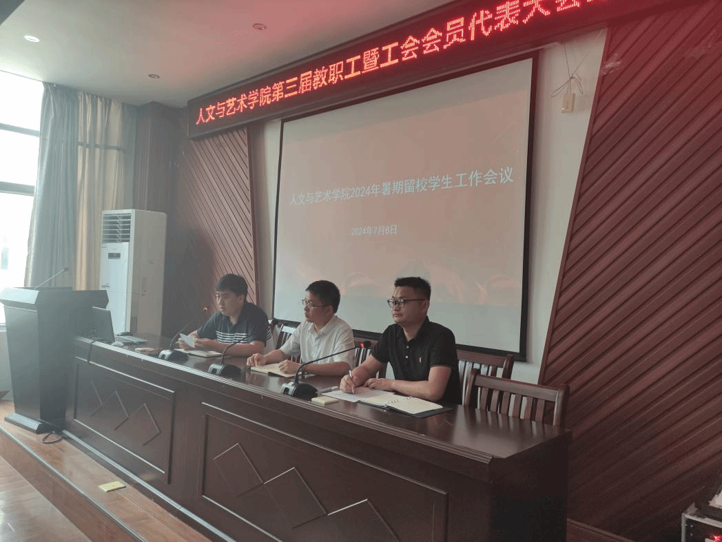 7月8日下午,人文与艺术学院召开了2024年暑期留校学生安全工作会议,院党委副书记黄海平、辅导员兰龙焱、马浩哲以及40位暑期留校学生参会。