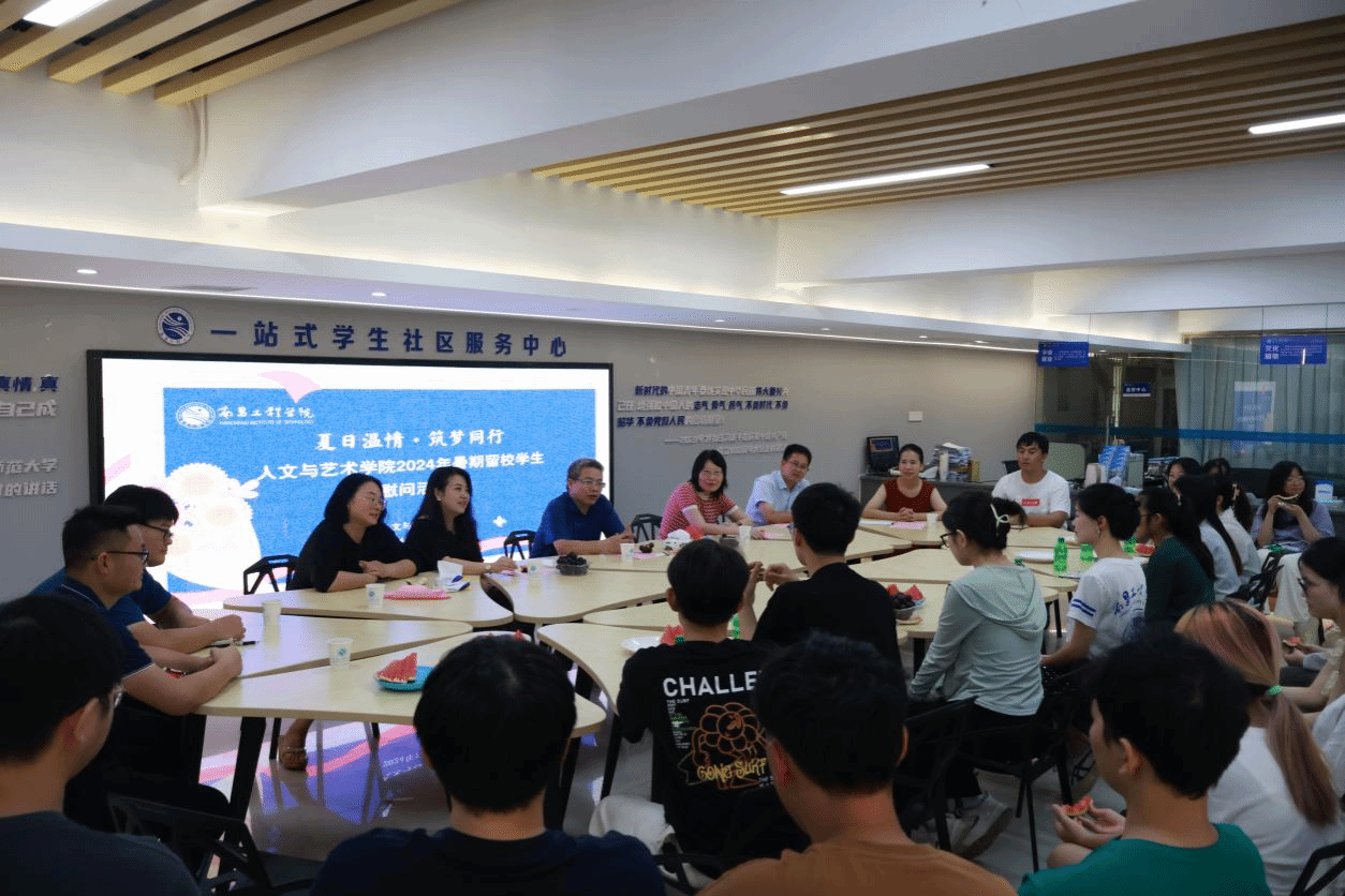 7月11日,校党委委员、纪委书记殷安全前往一站式学生社区服务中心看望慰问人文与艺术学院暑期留校学生并与大家进行座谈,人文与艺术学院领导班子、全体辅导员,学生社区相关老师参加活动。