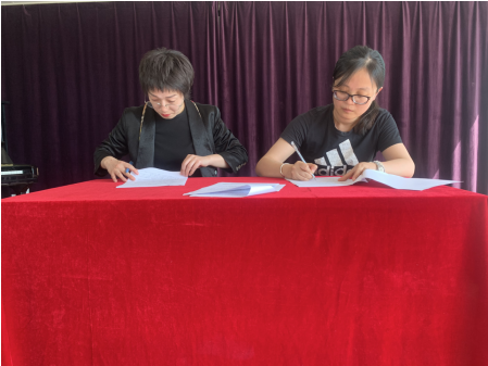 杭州琴缘艺校隶属于杭州咚呲哒呲文化艺术传播有限公司,公司成立于2010年9月,为桐庐县教育局审批通过的民办学校,总校占地面积一千平米,分校占地面积三百平米,学校老师主要来自全国各大艺术院校、艺术团体、师范院校等。学校教学理念先进,教学模式系统,教学团队专业,并配备了一流的教学设备和环境。成立十年来,向国内外专业艺术院校输送了一大批艺术人才,连年来承担了桐庐县、杭州市的少儿元旦晚会和各类艺术展演、赛事活动等。调研当天,音乐学教研室主任与公司董事长、校长、企业高管进行了深切座谈,就今后基地建设、项目孵化和人才输送展开充分交流,并达成一致意见。签约仪式之后,喻波与琴缘艺校校长毛俪蓓女士就协议内容挂牌。(文/图 喻波)