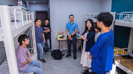 万芬芬一行深入学生实习生办公场所,详细询问和查看实习生的工作、生活、住宿与安全情况,并针对实习过程中的具体问题与学生进行了交流讨论,提出了积极的建议。