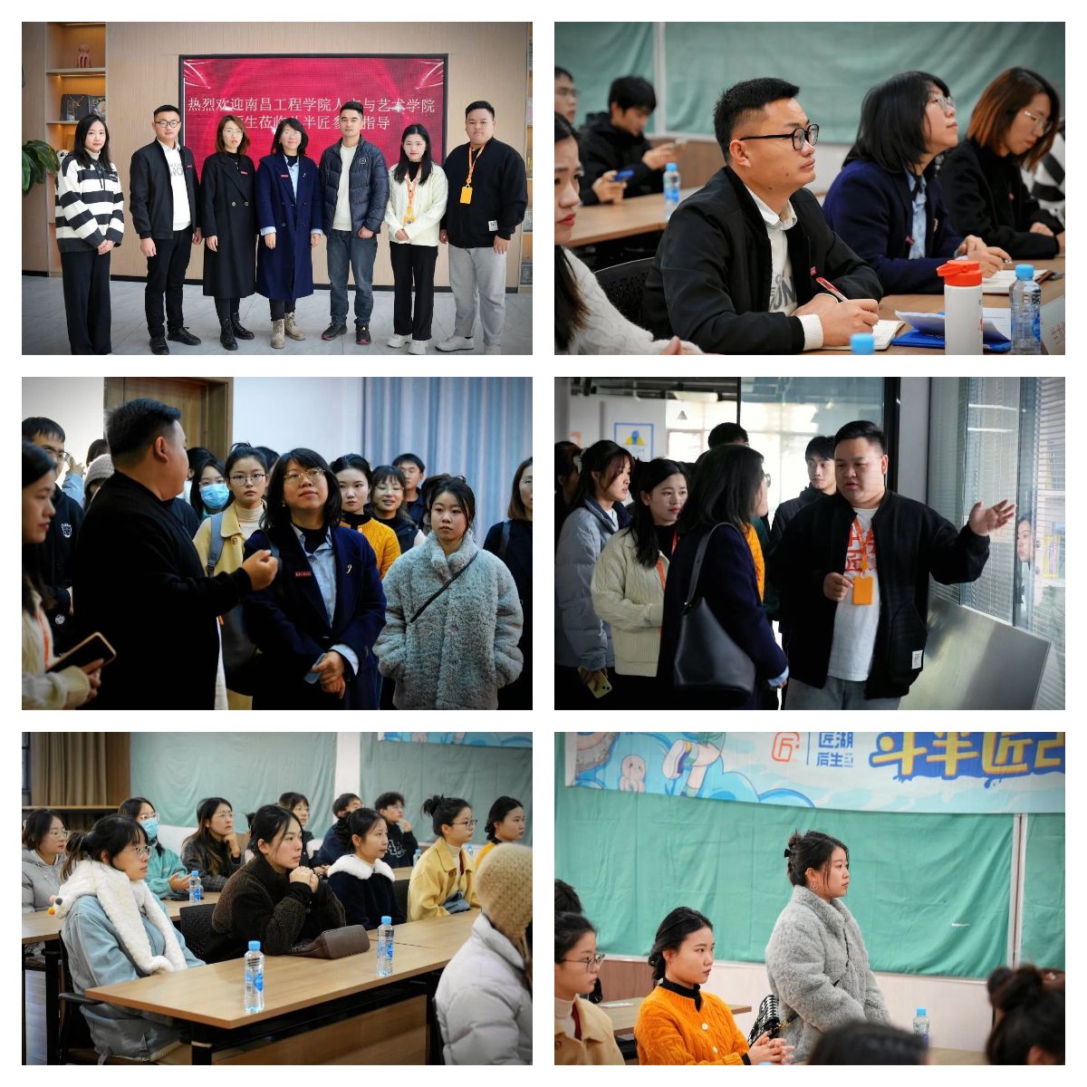 11月14日上午,人文与艺术学院数字媒体艺术教研室主任杨婷、专业负责人刘焰、就业辅导员兰龙焱及数字媒体、视觉传达、环艺设计研究生一行23人来到斗半匠文化产业园参观并开展访企拓岗活动。
