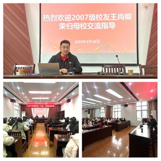 王尚卿主要从“大学如何赢在规划”、“为什么说专业决定未来”以及“大学生毕业后的四种发展方向”等三个方面开讲,他详细介绍了自己在巴彦淖尔日报社教培中心的工作经历,从最初不适生活节奏,到如何通过不断学习和努力,逐步走向职能岗位。在分享过程中,王尚卿特别强调了责任心和态度在职场中的重要性。他表示,除了专业技能外,拥有强大的责任心和良好的态度是职场成功的关键。他希望学弟学妹们能够在今后的学习工作生涯中找准自己的定位,充分发挥自己的优势,绽放属于自己的光彩。
