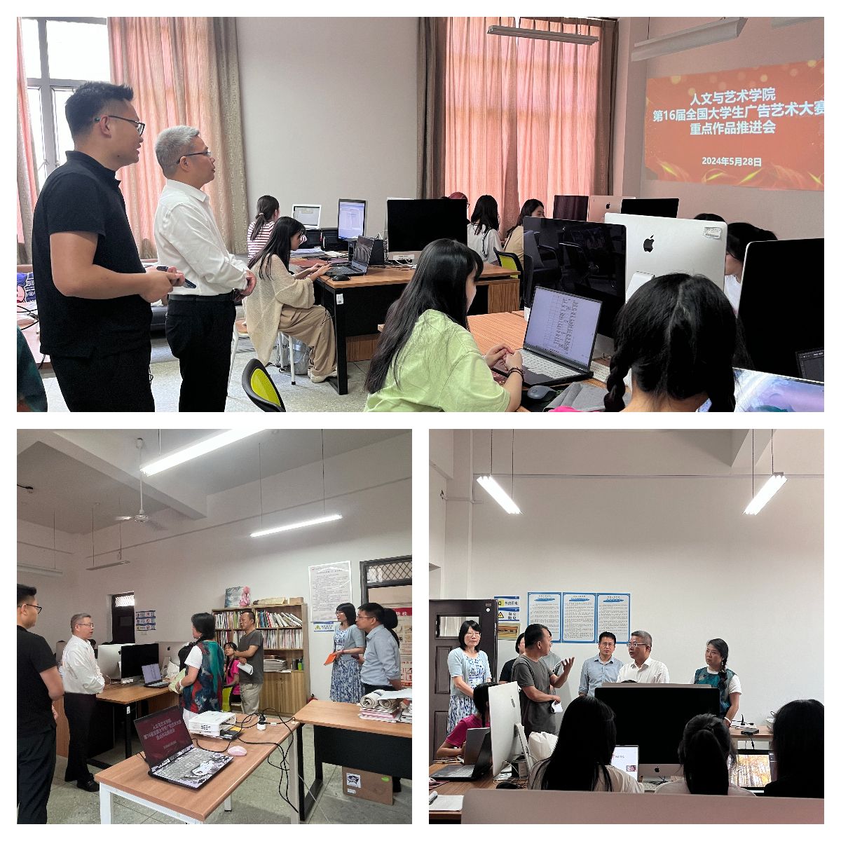 5月28日下午,校纪委书记殷安全到人文与艺术学院看望慰问正在备战第16届全国大学生广告艺术大赛的师生,指导学院学科竞赛工作,人文与艺术学院领导班子和相关指导老师陪同。