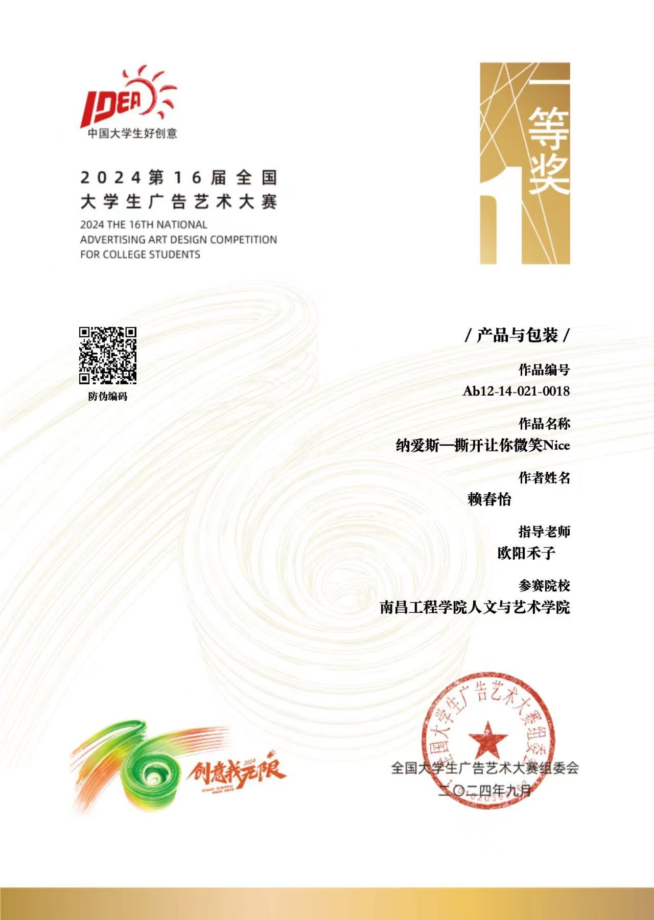 近日,全国大学生广告艺术大赛组委会正式公布第16届国赛获奖结果。我校在本次比赛中取得优异成绩,共获得国赛一等奖1项,二等奖1项;获得33项省奖,其中一等奖3项,二等奖14项,三等奖16项,创我校在该项比赛的历史最好成绩。