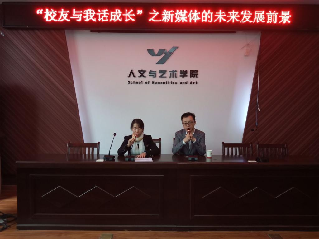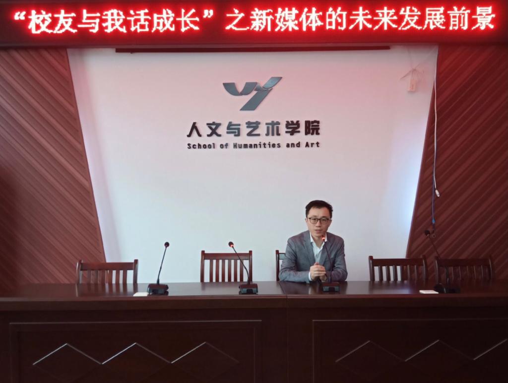 为丰富同学们对新媒体未来发展前景的认识,拓展专业领域的认知,10月18日上午,人文与艺术学院于艺术楼A230举办了“校友与我话成长”活动讲座。此次活动邀请到了我院03级传媒专业校友胡建树,院长张朝霞、党委副书记王锐、同时也邀请到了胡建树班主任、现代传媒艺术中心主任周行以及全体辅导员参加了,此次讲座由学院分团委副书记丁蓓蒂主持,17、18、19数字媒体专业及网络与新媒体专业同学到场聆听。