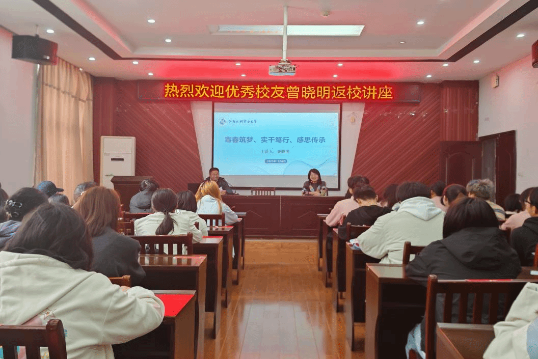 2025年11月6日,正值我校建校67周年之际,2006届现代传媒技术专业优秀校友、江西省江咨设计总院有限公司党总支书记、董事长、总经理曾晓明重返母校,在艺术楼A230会议室开展以“青春筑梦、实干笃行、感恩传承”为主题的专题讲座。作为瑶湖校区首届新生,曾晓明与在校师生共忆求学岁月,分享成长心得,传递奋斗力量。