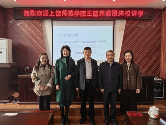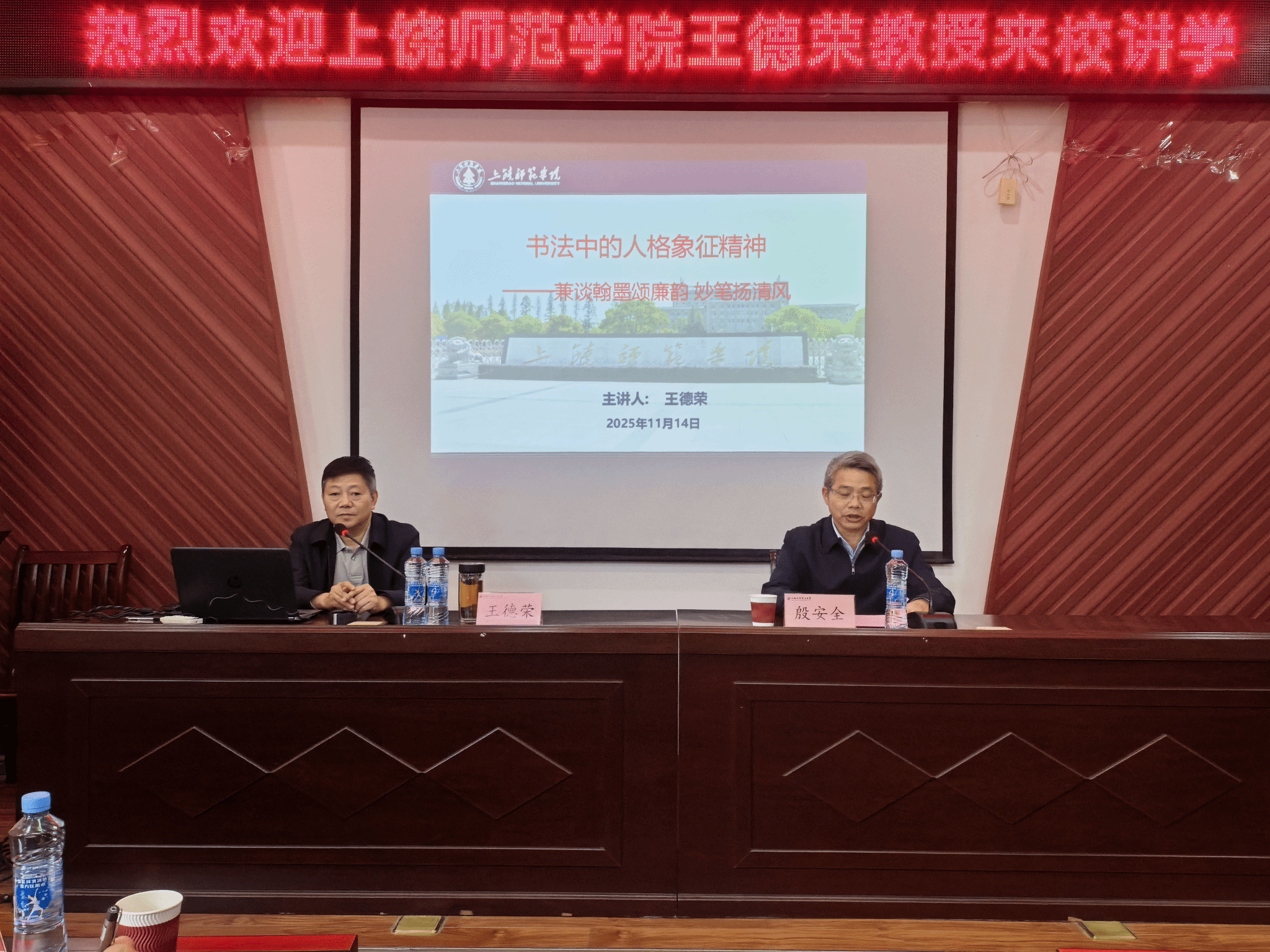 2025年11月14日上午,我校第338期“鄱湖学术讲坛”在艺术楼A230成功举办。本次讲座主题为“书法中的人格象征精神——兼谈翰墨颂廉韵 妙笔扬清风”,特邀原上饶师范学院纪委书记、教授王德荣担任主讲。校党委委员、副校长李培生,校党委委员、纪委书记殷安全,人文与艺术学院主要负责人及师生代表100余人参加了本次活动。