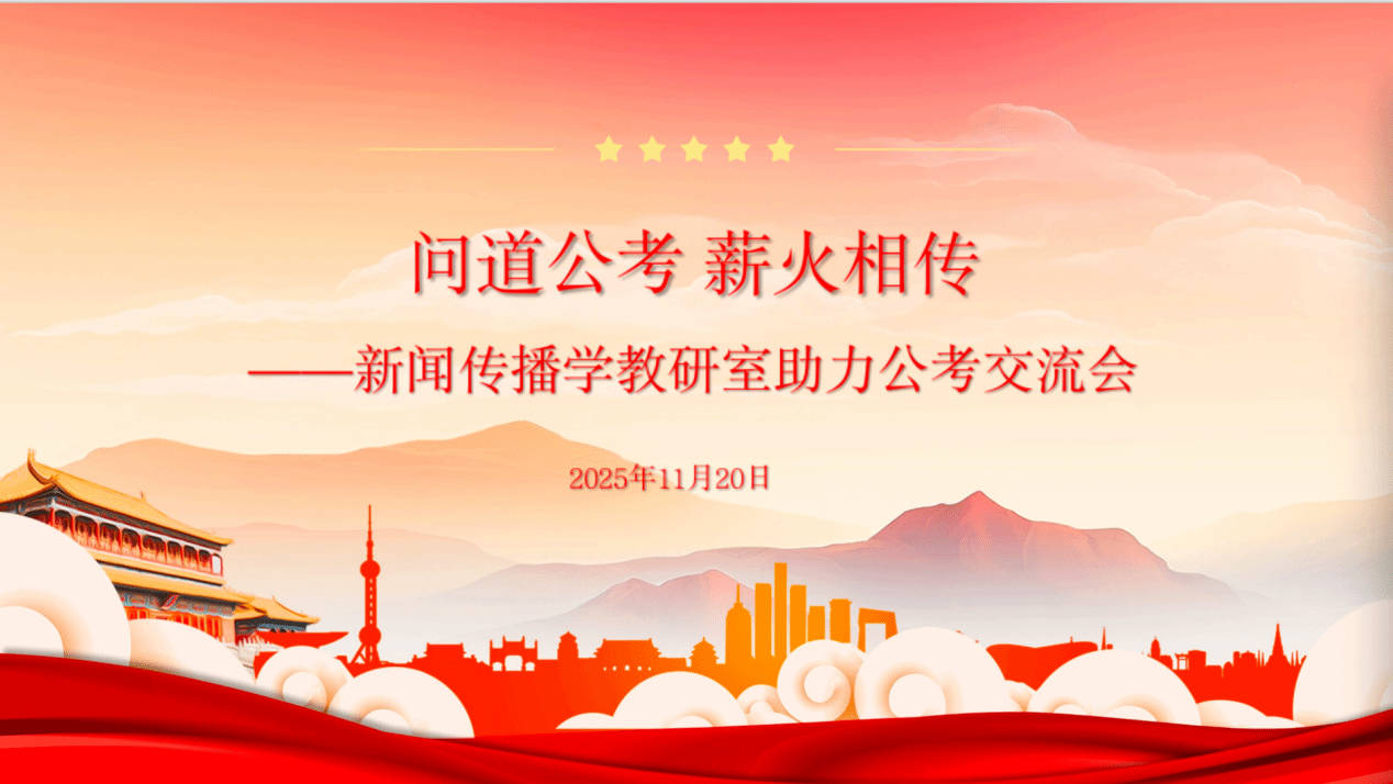 为助力学生明确公考方向、提升备考能力,国考前夕,11月20日,人文与艺术学院新闻传播学教研室举办“问道公考 薪火相传”线上经验交流会。会议由教研室主任张兰老师主持,专业教师赵敏、高新林、孙铭悦、兰龙焱及2022级相关专业学生共同参与,多名已“上岸”学长学姐应邀分享。