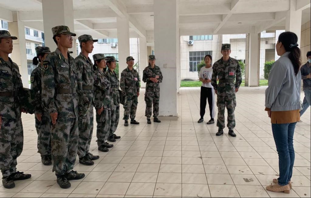 2020年10月14日上午,人文与艺术学院党委副书记王锐、组织员蒿佳杭、团委副书记丁蓓蒂及辅导员黄一诺、张淑华,于艺术楼架空层慰问九营(暨人文与艺术学院20级新生所在营)带训教官肖宝森等人。王书记详细询问了各班军训工作情况,肯定了训练成果,希望班主任和教官们严格要求、合理安排、科学施训,在教会学生军事技能的同时,注重培养学生吃苦耐劳、严守纪律的意志品质和积极向上、团结协作的团队精神。(文/图 廖东海)