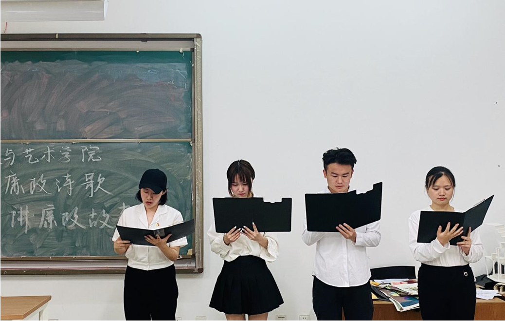燃青春岁月,守廉洁之心。为激励学生党员擦亮人生底色,将廉政铭记心中,将廉洁文化内化于心、外化于行。6月14日下午4时,人文与艺术学院学生党员在艺术楼B310开展“咏廉政诗歌 讲廉政故事”比赛,学生党员40余人参加了此次比赛。