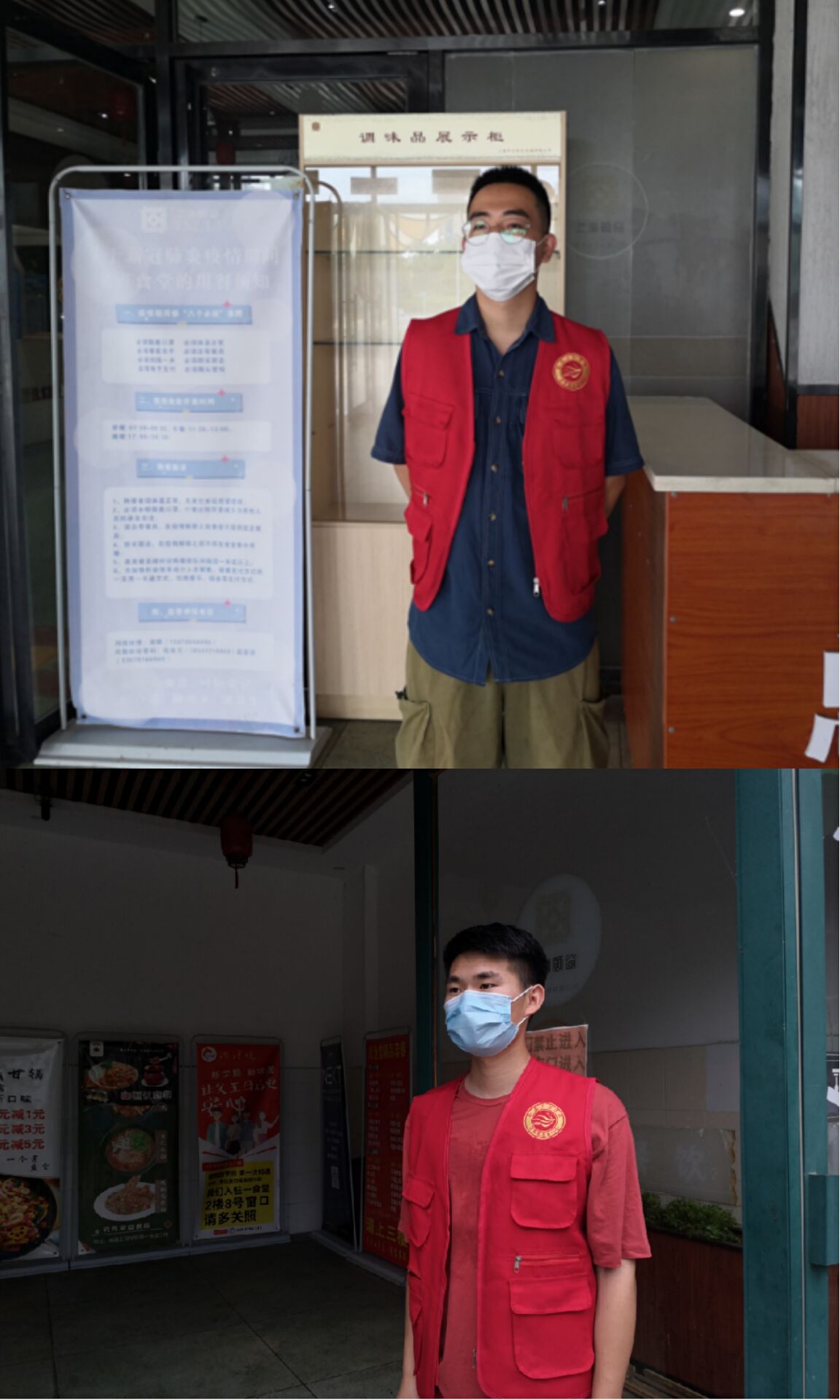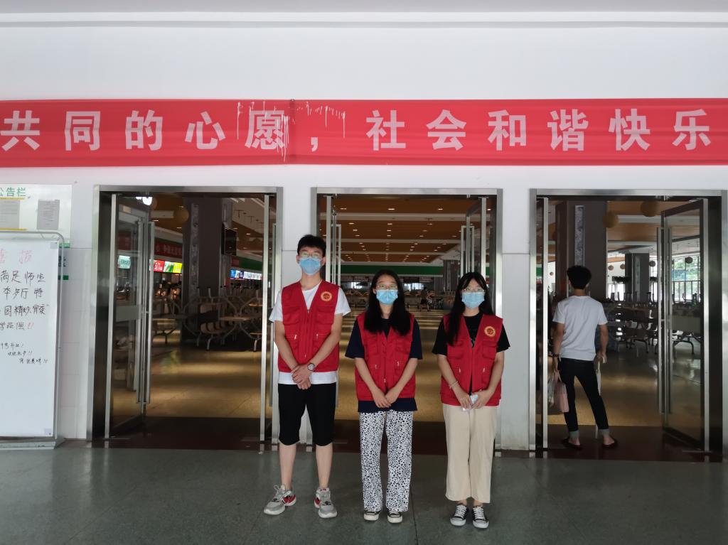 在这两天的志愿活动中,我院学生党员分为两批,一批驻守在食堂,一批驻守在11和12栋围墙附近。食堂批次志愿者戴好口罩,提早去值班点进行志愿服务。在食堂门口“站岗”,阻止未戴口罩的人员进入食堂,在食堂内“巡逻”,保持食堂内外的秩序稳定。在11和12栋值班的志愿者们,无惧外部天气,及时拦截学生取外卖行为,并对学生进行劝诫。被拦截的同学们也都表示之后不会在这个特殊时期点外卖。志愿者的服务都取得了一定的成效,获得了校里的高度认可。