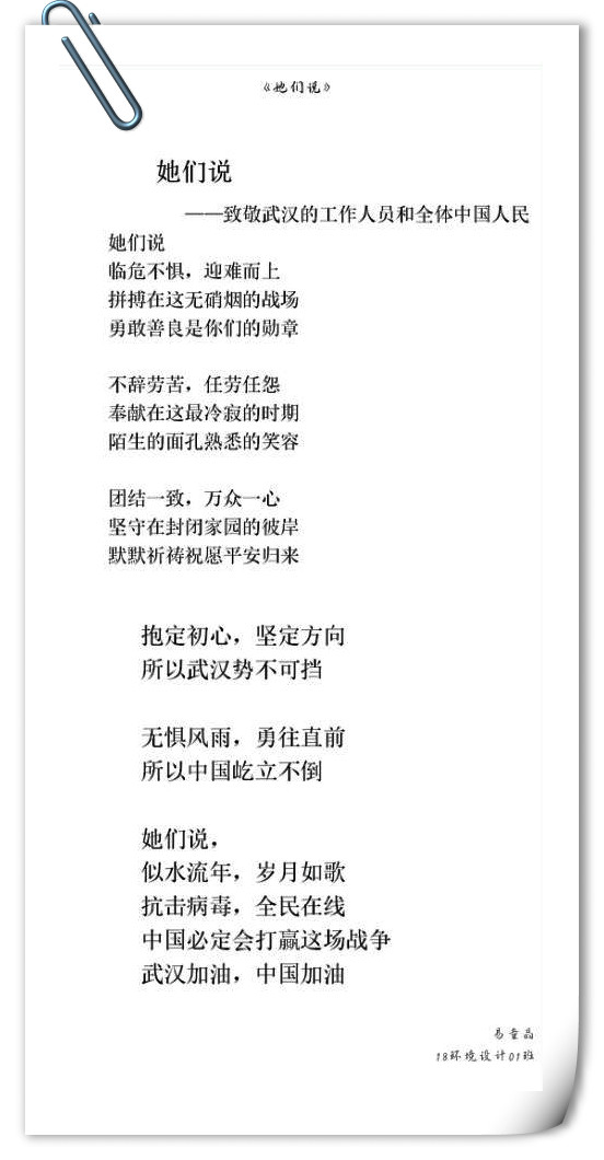 为颂扬抗疫精神,坚定抗疫信心,凝聚抗疫力量,近日,人文与艺术学院积极作为,充分发挥专业优势,积极组织开展疫情防控主题作品征集活动。截至目前,共收到绘画、设计、短视频、诗歌等艺术作品近百件。学院学子踊跃为助力抗疫开展主题创作,讴歌疫情防控中的优秀人物和感人事迹,为全面打赢疫情防控阻击战贡献了一份文艺力量。(文/丁蓓蒂 图/张明远)