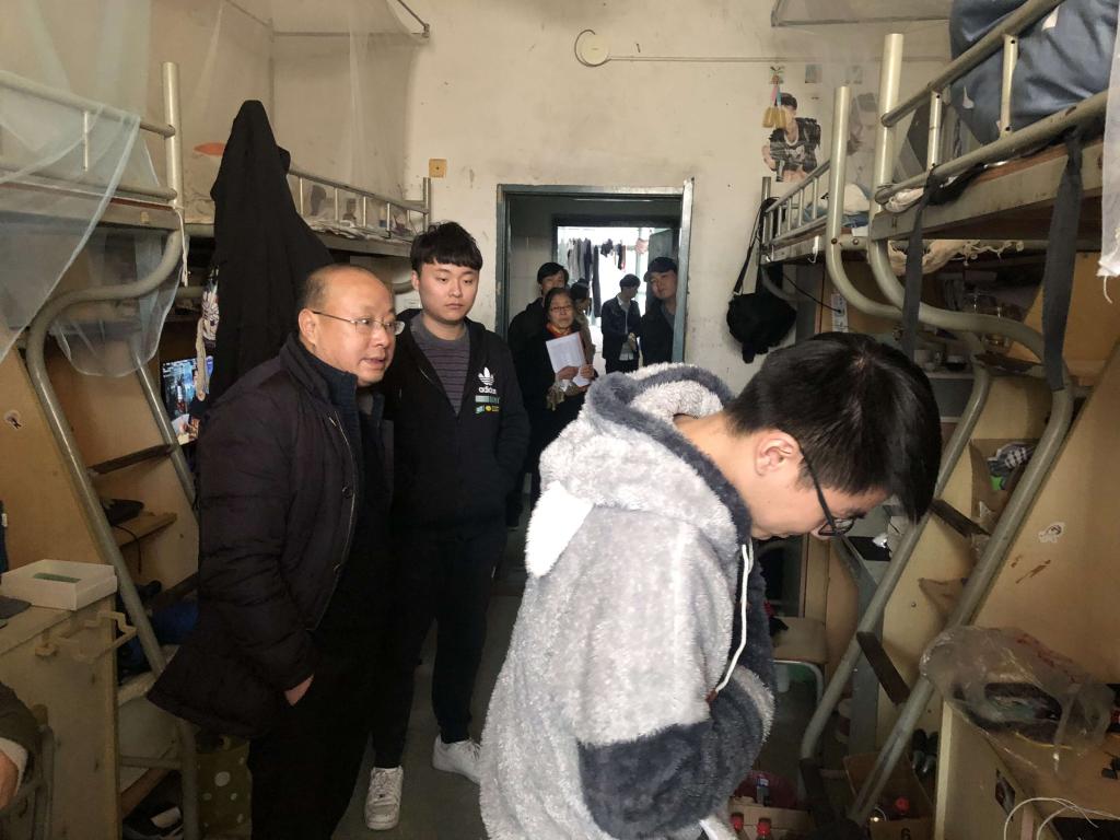 人文与艺术学院党委书记熊华林,党委副书记王锐及学院部分班主任于2019年12月27日前往学生宿舍5栋开展安全隐患排查工作。排查工作从学生寝室排查做起,不留“死角”,在排查工作中发现部分寝室里存在用电不安全的情况及消防安全隐患,个别同学使用违规电器等情况,班主任及时填写安全隐患排查表,并将出现的情况记录下来,为2020年的安全稳定工作计划确立方向。