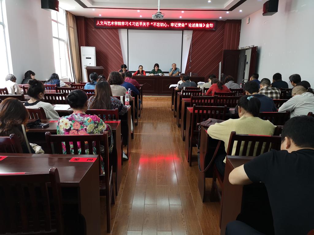 在深入学习贯彻习近平新时代中国特色社会主义思想,开展“不忘初心、牢记使命”主题教育之际,10月8日下午2点,人文与艺术学院党委组织全体教师党员于艺术楼A230集中学习《习近平关于“不忘初心、牢记使命”论述摘编》金句。此次集中学习由学院党委书记熊华林领学,全体教师党员参加了这次学习。