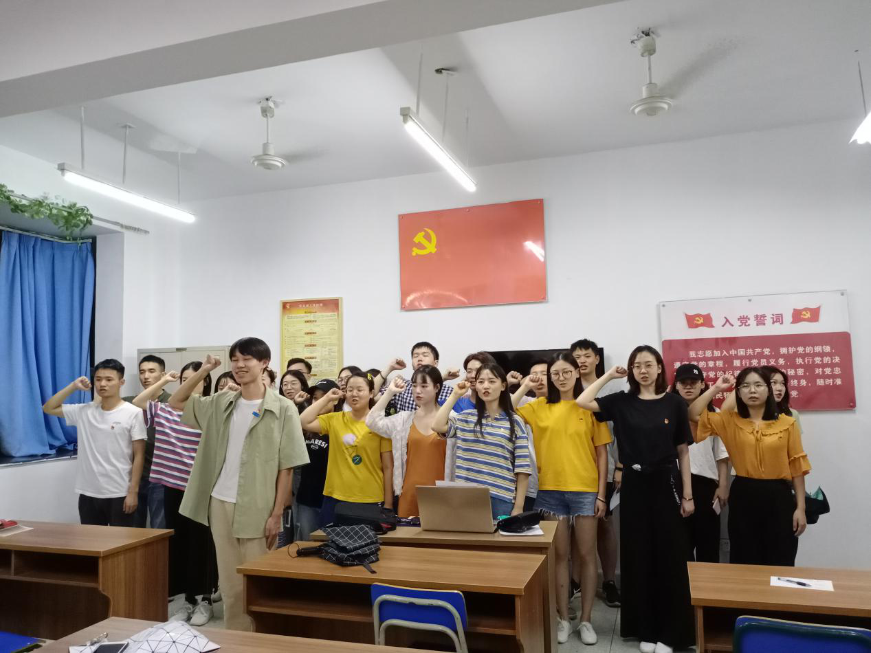 杨连梅围绕延安精神内容开展了党课。她阐述,延安精神的精髓主要有四个点,一个爱国,民本,求是,创业,当代的价值就是要求我们当代现代大学生要胸怀天下,坚定理想,脚踏实地,知难而进,自强不息,谦虚谨慎。当代大学生要立足于实践,有时只是说的到而做不到,我们要在有一定的理论知识来指挥我们实践的同时,发扬延安精神。秉承全心全意为人民服务的宗旨,自力更生艰苦奋斗。党课结束后,第一学生党支部副书记陶勇带领一批新发展的党员进行了入党宣誓,他们用铿锵有力的声音来表达对党的忠诚之情。