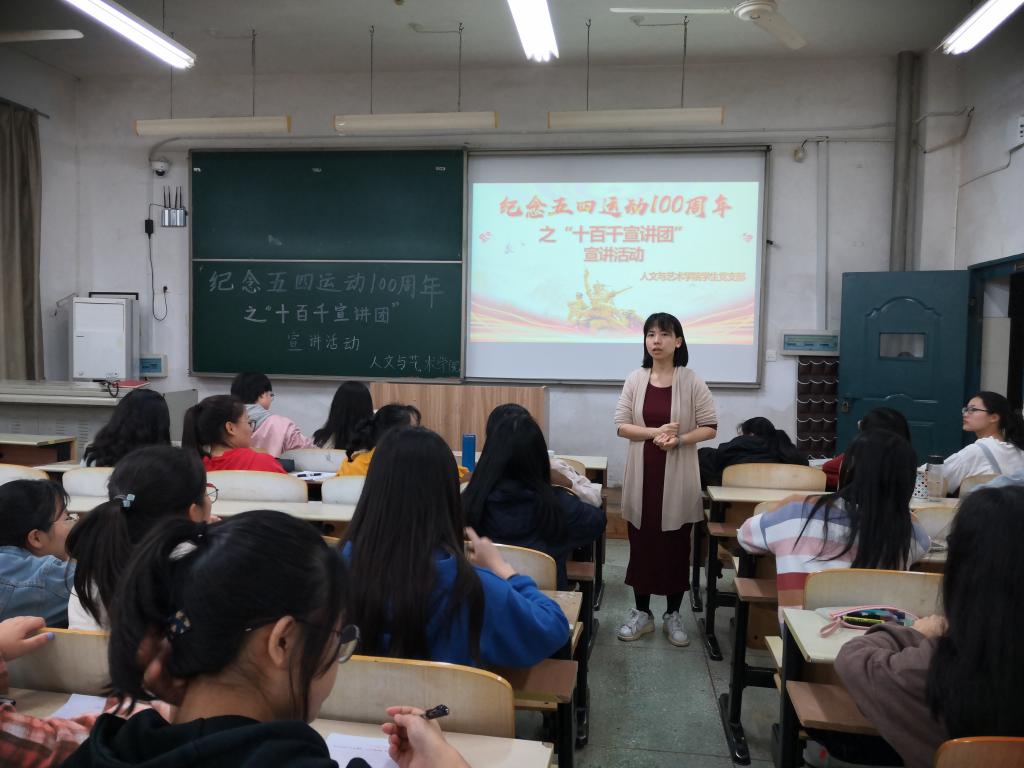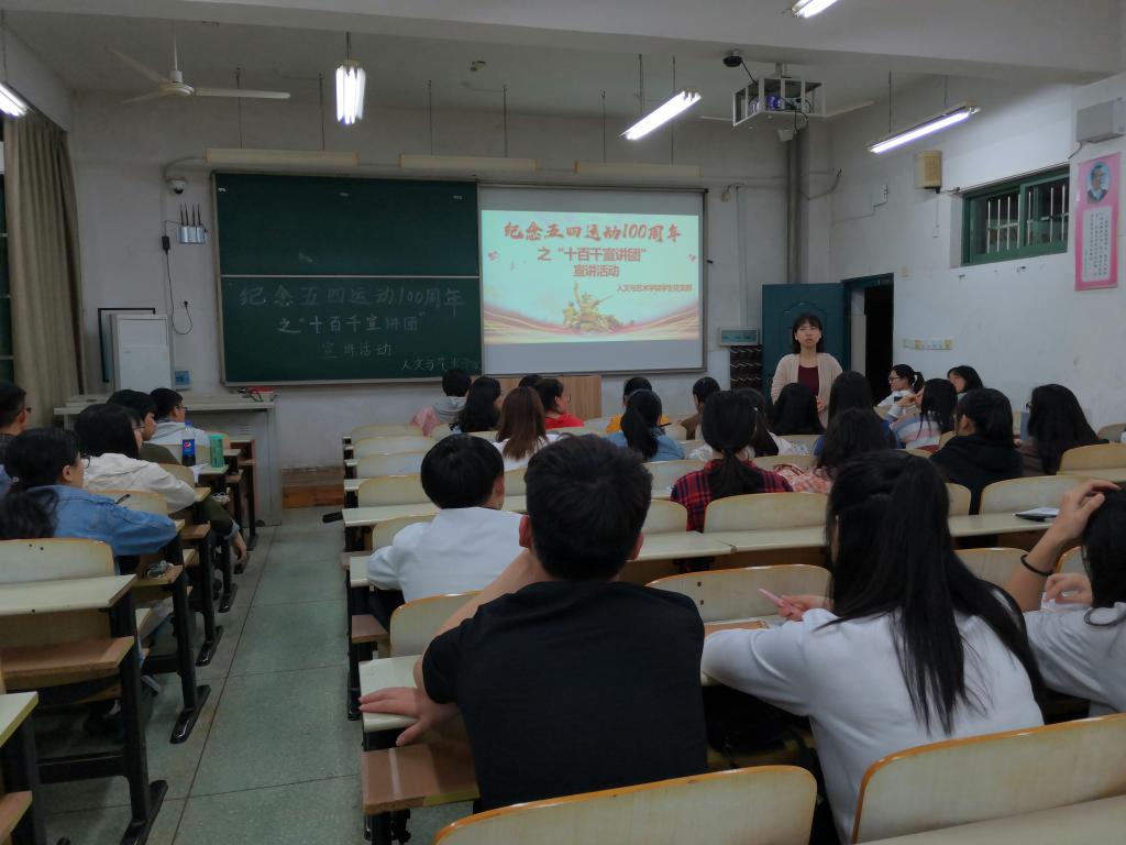 为纪念五四运动一百周年,进一步组织引导我院学生继承和发扬五四精神,4月17日,我院在教学北楼b113教室开展“十千百宣讲团”之纪念五四运动100周年宣讲活动。我院组织员丁蓓蒂老师担任本次活动主讲,学院党员和入党积极分子参加了本次宣讲活动。