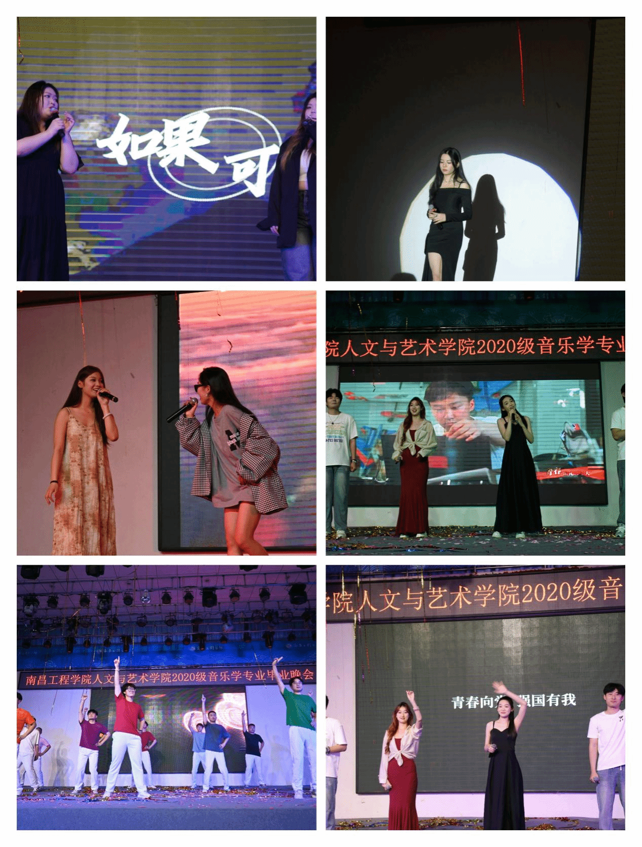 本次毕业晚会包含17个节目,演绎形式多样。《阳光男孩阳光女孩》舞蹈作为开场表演,展现了毕业生们激情四溢的青春活力。《齐天大圣》《最美的太阳》《冬天里的一把火》等歌曲表达了毕业生们对校园生活的美好回忆、对未来人生道路的热烈期待;情景剧《时间都去哪儿了》揭示了大学生应该怎样进行时间管理,规划好自己的大学生活;器乐合奏《上春山》展现了大学生们对中华优秀传统文化的传承和弘扬;原创歌曲《青春向党》是在校团委的指导下,2020级音乐学班主任蒿佳杭和郭腾、杨宗霖、费叶琳、徐思琦等同学一起创作并演唱的建团百年歌曲,该作品曾在“学习强国”学习平台上发表,激励当代大学生努力在青春赛道上跑出最好成绩;乐队表演《你要跳舞吗》《海阔天空》将晚会推向高潮,彰显了音乐学子们扎实的专业功底和独特的艺术魅力。晚会在《离别诗》朗诵节目后落下帷幕,观众们纷纷起立,为毕业生们送上热烈的掌声和深情的祝福。