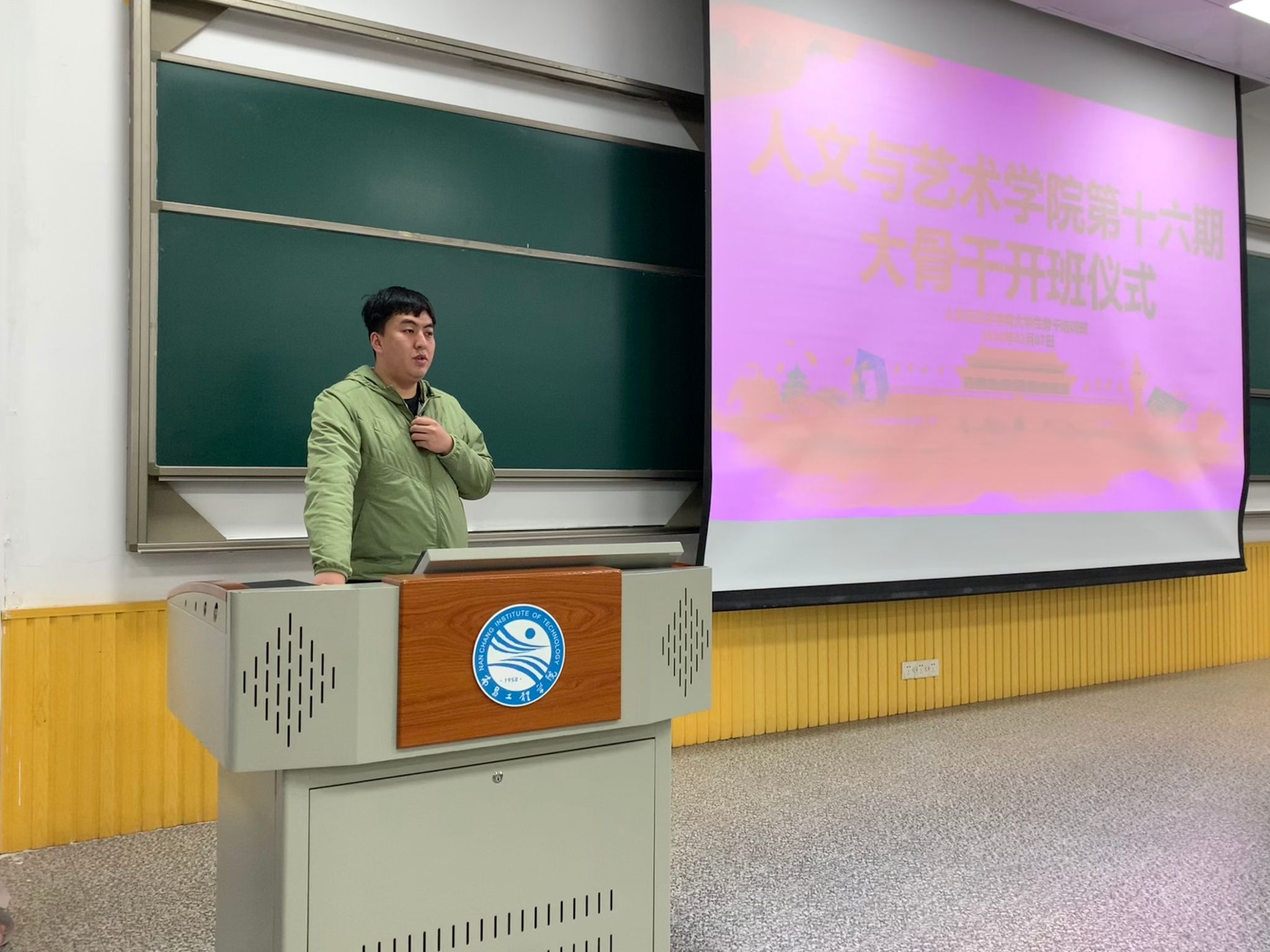 3月7日,我院青年马克思主义者大学生骨干培训班开班仪式在南c205举行,辅导员马浩哲为大学生骨干培训班学员作开班第一讲,人文与艺术学院团委学生会全体学生干部参与仪式。