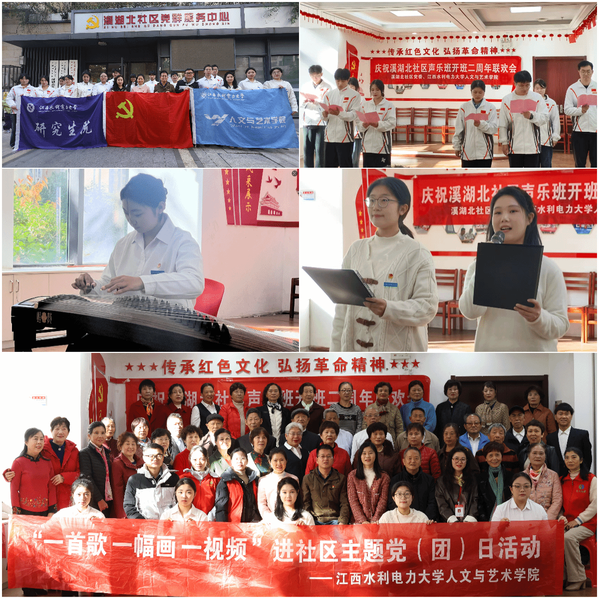 活动现场,师生们表演了古筝独奏《丰收锣鼓》、女声独唱《芦花》和集体朗诵《如果信仰有颜色》《青春中国》等节目,通过音乐将艺术实践与社会服务相结合。人文与艺术学院已连续两年定期组织师生走进该社区开展教唱,未来学院还将联合研究生院深化这一育人模式,推动“党建+”常态化、品牌化发展。(文/ 兰龙焱、蒿佳杭 图/曾祥根、姜婉怡)
