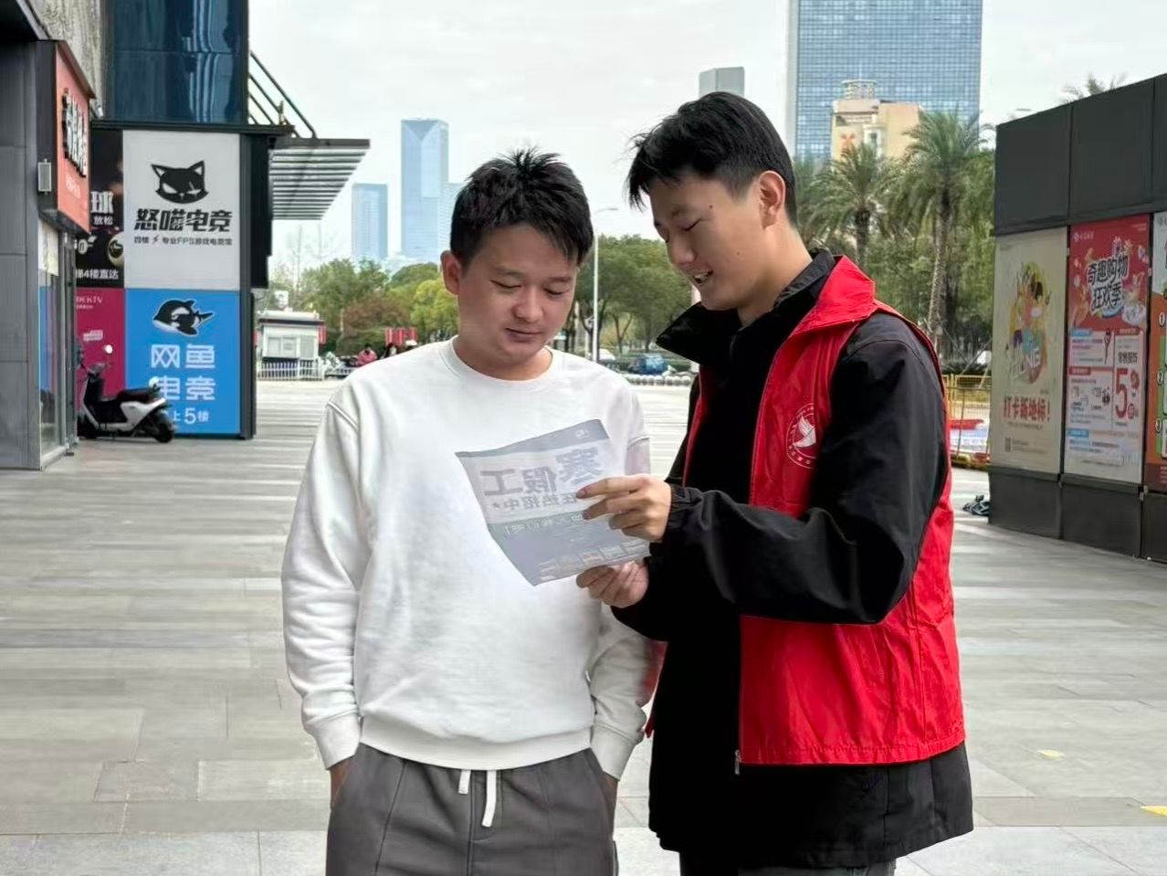 活动前,学生志愿者提前梳理近年高发诈骗案例,聚焦网络刷单、虚假购物、冒充客服退款、校园贷等不同群体易遭遇的骗局类型,提炼识别要点、防范技巧以及被骗后的止损流程,确保宣讲内容精准实用。在天虹奥体中心,志愿者针对中老年群体对网络骗局警惕性较低的特点,用通俗语言拆解虚假优惠、中奖信息等诈骗套路,反复强调“未知链接不点击、转账汇款多核实”的防骗原则;学校后街面向师生,重点讲解校园贷的隐蔽危害与兼职诈骗的常见话术,提醒学生远离“高薪兼职”“免费礼品”等诱饵;正嘉都荟广场人流密集,志愿者主动上前发放宣传资料,结合案例讲解个人信息保护的重要性,解答市民关于反诈的疑问。