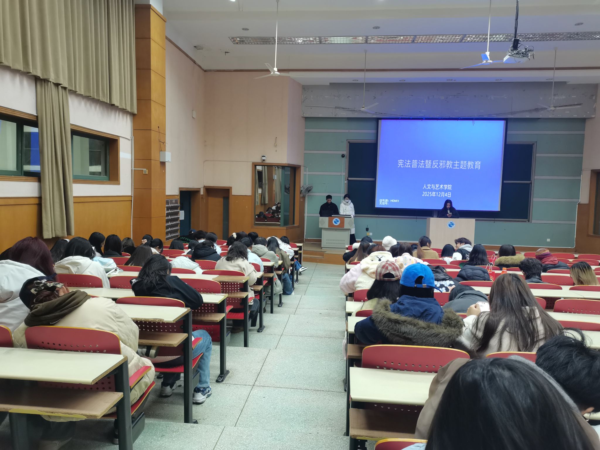 为弘扬宪法精神,切实强化学生法治观念与防邪反邪意识,在“12·4”国家宪法日到来之际,人文与艺术学院各班组织开展了宪法普法暨反邪教主题教育活动。